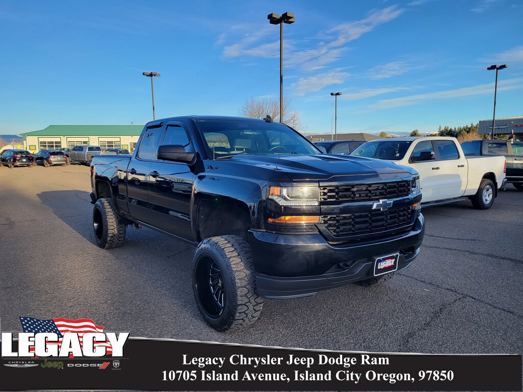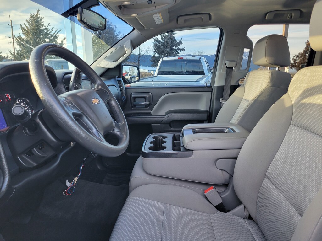 Legacy Chrysler Jeep Dodge RAM is a small town dealership where reputation is everything. We build our business with the help and support of our customers. As the top dealer in Eastern Oregon we are able to offer a wide selection of cars and trucks, excellent pricing and a hassle free buying experience. All of our vehicles are safety inspected, Legacy certified and come with an AutoCheck vehicle history report. 6-Speed Automatic Electronic with Overdrive, 4WD, Cloth, 150 Amp Alternator, 20 x 9 Chrome Clad Aluminum Wheels, 3-Passenger Full-Width Folding Rear Bench Seat, 3.42 Rear Axle Ratio, 4-Wheel Disc Brakes, 40/20/40 Front Split Bench Seat, 6 Speakers, ABS brakes, Air Conditioning, Alloy wheels, AM/FM radio, Black Power Adjustable Heated Outside Mirrors, Bluetooth® For Phone, Body Color Rear Bumper w/Cornersteps, Body-Color Grille Surround, Body-Color Headlamp Bezels, Brake assist, Bumpers: body-color, Cloth Seat Trim, Deep-Tinted Glass, Delay-off headlights, Driver door bin, Driver Information Center, Dual front impact airbags, Dual front side impact airbags, Electronic Stability Control, Exterior Parking Camera Rear, Front anti-roll bar, Front Body-Color Bumper, Front Center Armrest w/Storage, Front Frame-Mounted Black Recovery Hooks, Front reading lights, Front wheel independent suspension, Fully automatic headlights, Graphite-Colored Rubberized-Vinyl Floor Covering, Heated door mirrors, Heavy Duty Suspension, High-Intensity Discharge Headlights, Illuminated entry, Low tire pressure warning, Manual Tilt Wheel Steering Column, Occupant sensing airbag, Overhead airbag, Overhead console, Passenger door bin, Passenger vanity mirror, Power door mirrors, Power steering, Power windows, Power Windows w/Driver Express Up, Premium audio system: Chevrolet MyLink, Radio data system, Radio: AM/FM w/7 Diagonal Color Touch Screen, Rear reading lights, Rear step bumper, Silverado Custom Trim, Speed control, Speed-sensing steering, Tachometer, Tilt steering wheel, Traction control, Trip computer, Variably intermittent wipers, and Voltmeter.
