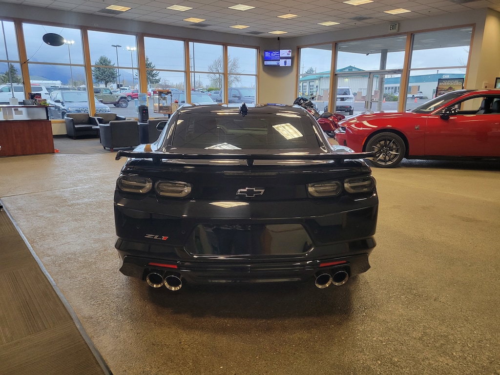 Legacy Chrysler Jeep Dodge RAM is a small town dealership where reputation is everything. We build our business with the help and support of our customers. As the top dealer in Eastern Oregon we are able to offer a wide selection of cars and trucks, excellent pricing and a hassle free buying experience. All of our vehicles are safety inspected, Legacy certified and come with an AutoCheck vehicle history report. Preferred Equipment Group ZL1 (Rear Park Assist), 2.85 Rear Axle Ratio, 4-Wheel Disc Brakes, 6-Way Power Front Passenger Seat Adjuster, 8-Way Power Driver Seat Adjuster, 9 Speakers, ABS brakes, Adaptive suspension, Air Conditioning, All-Weather Cargo Mat w/Camaro Logo (LPO), All-Weather Floor Mats, Alloy wheels, AM/FM radio: SiriusXM with 360L, Apple CarPlay/Android Auto, Auto-dimming door mirrors, Automatic temperature control, Bluetooth® For Phone, Bose Premium 9-Speaker Audio System Feature, Brake assist, Brembo 4-Wheel Performance Disc Brakes, Bumpers: body-color, Cargo Net, Compass, Delay-off headlights, Driver door bin, Driver vanity mirror, Dual front impact airbags, Dual front side impact airbags, Electronic Stability Control, Exterior Parking Camera Rear, Four wheel independent suspension, Front anti-roll bar, Front Bucket Seats, Front Center Armrest, Front dual zone A/C, Front License Plate Bracket, Front reading lights, Fully automatic headlights, Heads-Up Display, Heated door mirrors, Heated Driver & Front Passenger Seats, Heated front seats, Heated steering wheel, High-Intensity Discharge Headlights, Illuminated entry, Knee airbag, Leather-Trimmed Seat Trim w/Sueded Inserts, Low tire pressure warning, Memory seat, Not Equipped w/Dr & Fr Pass Heated or Ventilated Seats, Not Equipped w/Rear Park Assist, Occupant sensing airbag, Outside temperature display, Overhead airbag, Paddle-Shift Manual Controls, Panic alarm, Passenger door bin, Passenger vanity mirror, Power door mirrors, Power driver seat, Power passenger seat, Power steering, Power windows, Premium audio system: Chevrolet Infotainment System, Radio data system, Radio: Chevrolet Infotainment 3 Plus System, Radio: Chevrolet Infotainment 3 Premium System, Rear anti-roll bar, Rear window defroster, RECARO Performance Front Bucket Seats, Remote keyless entry, Remote Vehicle Starter System, Security system, SiriusXM w/360L, Speed control, Speed-sensing steering, Spoiler, Sport steering wheel, Steering wheel mounted audio controls, Tachometer, Telescoping steering wheel, Tilt steering wheel, Tire Inflation Kit, Traction control, Trip computer, Variably intermittent wipers, Ventilated Driver & Front Passenger Seats, Ventilated front seats, Voltmeter, and Wheels: 20 x 10 Fr & 20 x 11 Rr Dark Graphite.