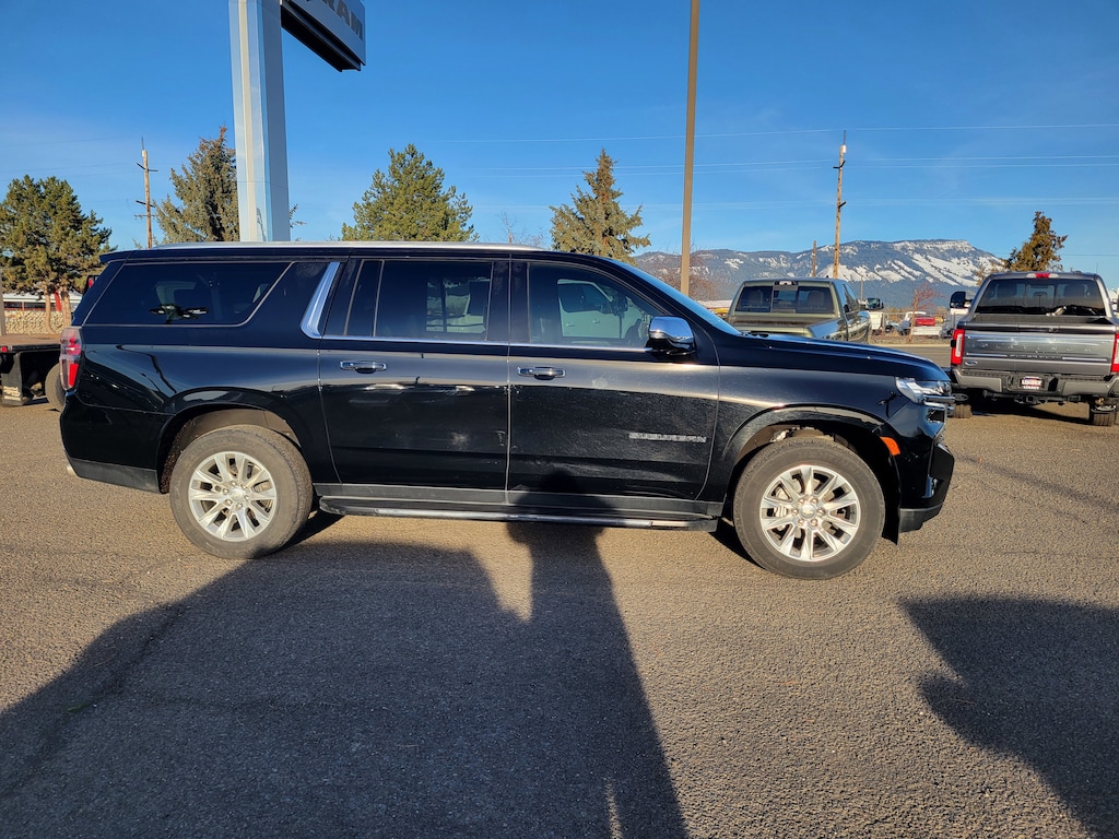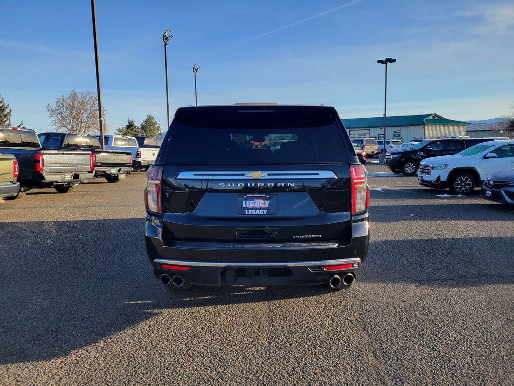 Legacy Chrysler Jeep Dodge RAM is a small town dealership where reputation is everything. We build our business with the help and support of our customers. As the top dealer in Eastern Oregon we are able to offer a wide selection of cars and trucks, excellent pricing and a hassle free buying experience. All of our vehicles are safety inspected, Legacy certified and come with an AutoCheck vehicle history report. License Plate Front Mounting Package, Preferred Equipment Group 1LZ (1st & 2nd Row Color-Keyed Carpeted Floor Mats, 2-Speed Active Electronic AutoTrac Transfer Case, 3rd Row 60/40 Power-Folding Split-Bench, Auto-Dimming Inside Rear-View Mirror, Bose 10-Speaker Surround w/CenterPoint, Bright Front & Rear Door Sill Plates, Chrome Door Handles w/Body-Color Strip, Chrome Mirror Caps, Color-Keyed Carpeting Floor Covering, Driver & Front Outboard Passenger Airbags, Dual Exhaust System, Enhanced Driver Information Center, Floor Console, Hands-Free Rear Power Programmable Liftgate, Heated & Ventilated Driver & Front Passenger Seats, Heated 2nd Row Outboard Seats, Heated Driver & Front Passenger Seats, Heated Steering Wheel, Hill Descent Control, Infotainment Display, Lane Change Alert w/Side Blind Zone Alert, LED Daytime Running Lamps, Memory Settings, Outside Heated Power-Adjustable Mirrors, Power Release 2nd Row Bucket Seats, Power Tilt & Telescopic Steering Column, Rear Cross Traffic Alert, Remote Start, Safety Alert Seat, SiriusXM Radio w/360L, Universal Home Remote, Wireless Charging, and Wrapped Steering Wheel), 10 Speakers, 20 x 9 Polished Aluminum Wheels, 3.23 Rear Axle Ratio, 3rd row seats: split-bench, 4-Wheel Disc Brakes, ABS brakes, Adaptive suspension, Air Conditioning, Alloy wheels, AM/FM radio: SiriusXM with 360L, Apple CarPlay/Android Auto, Auto High-beam Headlights, Auto-dimming door mirrors, Auto-dimming Rear-View mirror, Auto-leveling suspension, Automatic temperature control, Brake assist, Bumpers: body-color, Compass, Delay-off headlights, Driver door bin, Driver vanity mirror, Dual front impact airbags, Dual front side impact airbags, Electronic Stability Control, Emergency communication system: OnStar and Chevrolet connected services capable, Four wheel independent suspension, Front anti-roll bar, Front Bucket Seats, Front Center Armrest, Front dual zone A/C, Front reading lights, Fully automatic headlights, Garage door transmitter, Heated door mirrors, Heated front seats, Heated rear seats, Heated steering wheel, Illuminated entry, Low tire pressure warning, Magnetic Ride Control Suspension, Memory seat, Navigation System, Not Equipped w/4-Way Driver & Fr Pass Pwr Lumbar, Occupant sensing airbag, Outside temperature display, Overhead airbag, Overhead console, Panic alarm, Passenger door bin, Passenger vanity mirror, Perforated Leather Seating Surfaces, Power door mirrors, Power driver seat, Power Liftgate, Power passenger seat, Power steering, Power windows, Premium audio system: Chevrolet Infotainment 3 Premium, Radio: Chevrolet Infotainment 3 Premium System, Rain sensing wipers, Rear air conditioning, Rear anti-roll bar, Rear reading lights, Rear window defroster, Rear window wiper, Remote keyless entry, Roof rack: rails only, Security system, Speed control, Speed-sensing steering, Split folding rear seat, Spoiler, Steering wheel memory, Steering wheel mounted audio controls, Tachometer, Telescoping steering wheel, Tilt steering wheel, Traction control, Trip computer, Turn signal indicator mirrors, Variably intermittent wipers, Ventilated front seats, and Voltmeter.