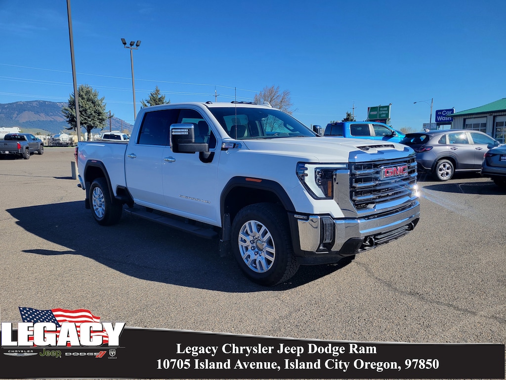 Legacy Chrysler Jeep Dodge RAM is a small town dealership where reputation is everything. We build our business with the help and support of our customers. As the top dealer in Eastern Oregon we are able to offer a wide selection of cars and trucks, excellent pricing and a hassle free buying experience. All of our vehicles are safety inspected, Legacy certified and come with an AutoCheck vehicle history report. Suspension Package, 10-Speed Automatic, 4WD, Leather, 10-Way Power Driver Seat Adjuster w/Lumbar, 10-Way Power Passenger Seat Adjuster w/Lumbar, 120-Volt Bed Mounted Power Outlet, 120-Volt Instrument Panel Power Outlet, 18 Machined Aluminum Wheels, 2 Charge-Only Rear USB Ports, 2 Charge/Data USB Ports, 2-Speed Active Transfer Case, 3.73 Rear Axle Ratio, 4-Wheel Disc Brakes, 6 Speakers, 6-Speaker Audio System Feature, ABS brakes, Air Conditioning, Alloy wheels, AM/FM radio: SiriusXM with 360L, Apple CarPlay/Android Auto, Auto High-beam Headlights, Auto-dimming door mirrors, Auto-dimming Rear-View mirror, Automatic Emergency Braking, Automatic temperature control, Brake assist, Buckle to Drive, Bumpers: chrome, Chrome Surround Grille w/Chrome Insert Bars, Compass, Deep-Tinted Glass, Delay-off headlights, Driver door bin, Driver Memory, Driver vanity mirror, Dual front impact airbags, Dual front side impact airbags, Electric Rear-Window Defogger, Electronic Stability Control, Following Distance Indicator, Forward Collision Alert, Front 40/20/40 Split-Bench Seats, Front anti-roll bar, Front Center Armrest w/Storage, Front dual zone A/C, Front fog lights, Front Pedestrian Braking, Front Rain-Sensing Wipers, Front reading lights, Front wheel independent suspension, Fully automatic headlights, GMC Connected Access Capable, Heated door mirrors, Heated Driver & Front Outboard Passenger Seats, Heated front seats, Heated steering wheel, Heavy-Duty 80 Amp Battery, Hitch Guidance w/Hitch View, Illuminated entry, In-Vehicle Trailering System App, Integrated Trailer Brake Controller, IntelliBeam Automatic High Beam On/Off, Keyless Open & Start, Lane Departure Warning System, LED Cargo Area Lighting, Low tire pressure warning, Manual Tilt-Wheel/Telescoping Steering Column, Memory seat, Occupant sensing airbag, OnStar & GMC Connected Services Capable, Outside temperature display, Overhead airbag, Overhead console, Panic alarm, Passenger door bin, Passenger vanity mirror, Perf Leather-Appointed Front Outboard Seat Trim, Pickup Box, Power door mirrors, Power driver seat, Power Front Passenger Windows w/Express Up/Down, Power passenger seat, Power steering, Power windows, Premium audio system: Premium GMC Infotainment System, Push Button Start, Radio: AM/FM w/Premium GMC Infotainment System, Rain sensing wipers, Rear reading lights, Rear seat center armrest, Rear step bumper, Rear Wheelhouse Liners, Rear window defroster, Remote keyless entry, Remote Vehicle Starter System, Security system, SiriusXM w/360L, Speed control, Speed-sensing steering, Split folding rear seat, Steering Wheel Audio Controls, Steering wheel mounted audio controls, Tachometer, Telescoping steering wheel, Tilt steering wheel, Traction control, Trip computer, Turn signal indicator mirrors, Unauthorized Entry Theft-Deterrent System, Variably intermittent wipers, Voltmeter, and Wireless Phone Projection.