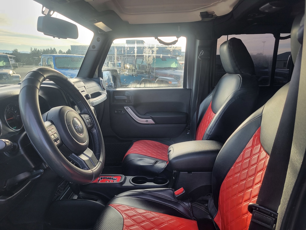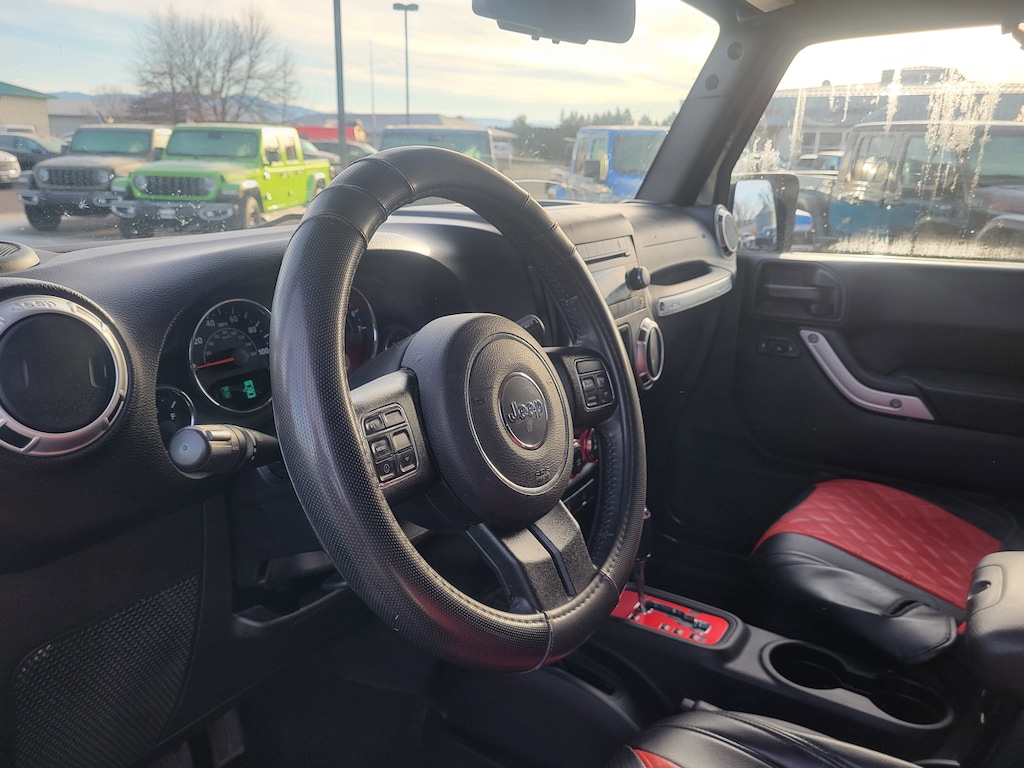 Legacy Chrysler Jeep Dodge RAM is a small town dealership where reputation is everything. We build our business with the help and support of our customers. As the top dealer in Eastern Oregon we are able to offer a wide selection of cars and trucks, excellent pricing and a hassle free buying experience. All of our vehicles are safety inspected, Legacy certified and come with an AutoCheck vehicle history report. Connectivity Group (Remote USB Port, Tire Pressure Monitoring Display, Uconnect Voice Command w/Bluetooth, and Vehicle Information Center), Quick Order Package 24G (Body Color Appliques Front Bumper, Body Color Appliques Rear Bumper, and Body Color/Accent Color Grille), 18 x 7.5 Polished Satin Carbon Wheels, 3.21 Rear Axle Ratio, 4-Wheel Disc Brakes, 8 Speakers, ABS brakes, Air Conditioning, Alloy wheels, AM/FM radio: SiriusXM, Audio Jack Input for Mobile Devices, Auto-dimming Rear-View mirror, Black 3-Piece Hard Top, Brake assist, CD player, Cloth Seats w/Adjustable Head Restraints, Compass, Delete Sunrider Soft Top, Driver door bin, Driver vanity mirror, Dual front impact airbags, Electronic Stability Control, Freedom Panel Storage Bag, Front anti-roll bar, Front Bucket Seats, Front Center Armrest w/Storage, Front fog lights, Front reading lights, Fully automatic headlights, Heated door mirrors, Heavy Duty Suspension w/Gas Shocks (DISC), Illuminated entry, Integrated roll-over protection, Leather steering wheel, Low tire pressure warning, Occupant sensing airbag, Outside temperature display, Panic alarm, Passenger door bin, Passenger vanity mirror, Power door mirrors, Power steering, Power windows, Radio data system, Radio: 130, Rear anti-roll bar, Rear Window Defroster, Rear Window Wiper/Washer, Remote keyless entry, Security system, Speed control, Split folding rear seat, Steering wheel mounted audio controls, Tachometer, Tilt steering wheel, Traction control, Trip computer, and Variably intermittent wipers.