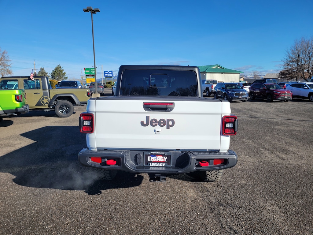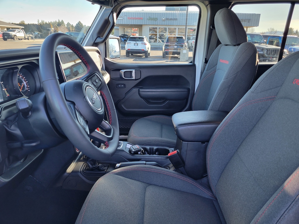 Legacy Chrysler Jeep Dodge RAM is a small town dealership where reputation is everything. We build our business with the help and support of our customers. As the top dealer in Eastern Oregon we are able to offer a wide selection of cars and trucks, excellent pricing and a hassle free buying experience. All of our vehicles are safety inspected, Legacy certified and come with an AutoCheck vehicle history report. Convenience Group (Emergency/Assistance Call, Heated Front Seats, Heated Steering Wheel, Remote Start System, SiriusXM Radio Service, SiriusXM w/360L, and Universal Garage Door Opener), Quick Order Package 24R Rubicon, 12.3 Touchscreen Display, 4-Wheel Disc Brakes, 4.10 Rear Axle Ratio, 4G LTE Wi-Fi Hot Spot, 8 Speakers, 97 MPH Vehicle Max Speed Calibration, ABS brakes, Air Conditioning, Alexa Built-In, Alloy wheels, AM/FM radio: SiriusXM with 360L, Apple CarPlay, Apple CarPlay/Android Auto, Automatic temperature control, Black 3-Piece Hard Top, Brake assist, Cloth Low-Back Bucket Seats, Compass, Connectivity - US/Canada, Delay-off headlights, Driver door bin, Driver vanity mirror, Dual front impact airbags, Dual front side impact airbags, Electronic Stability Control, Emergency communication system: Jeep Connect, Freedom Panel Storage Bag, Front anti-roll bar, Front Bucket Seats, Front Center Armrest w/Storage, Front dual zone A/C, Front fog lights, Front License Plate Bracket, Front reading lights, Fully automatic headlights, Google Android Auto, Heated door mirrors, Illuminated entry, Integrated Center Stack Radio, Integrated roll-over protection, Low tire pressure warning, Manufacturer's Statement of Origin (DISC), MOPAR All-Weather Slush Mats, Mopar Bright Door Sills, MOPAR Doors Off Mirror Kit, MOPAR Hard Tri-Fold Tonneau Cover, MOPAR Hardtop Headliner, MOPAR Sunrider For Hardtop, MOPAR Windshield Tie Down Strap, Occupant sensing airbag, Outside temperature display, Overhead airbag, Panic alarm, Passenger door bin, Passenger vanity mirror, Performance Suspension, Power door mirrors, Power steering, Power windows, Radio data system, Radio: Uconnect 5 w/12.3 Display, Rear anti-roll bar, Rear reading lights, Rear Sliding Window, Rear Window Defroster, Remote keyless entry, Security system, Speed control, Split folding rear seat, Steering wheel mounted audio controls, Tachometer, Telescoping steering wheel, Tilt steering wheel, Traction control, Trip computer, USB Host Flip, Variably intermittent wipers, Voltmeter, Wheels: 17 x 7.5 Machined w/Black Pockets, and Wheels: 17 x 7.5 Machined/Painted Black.