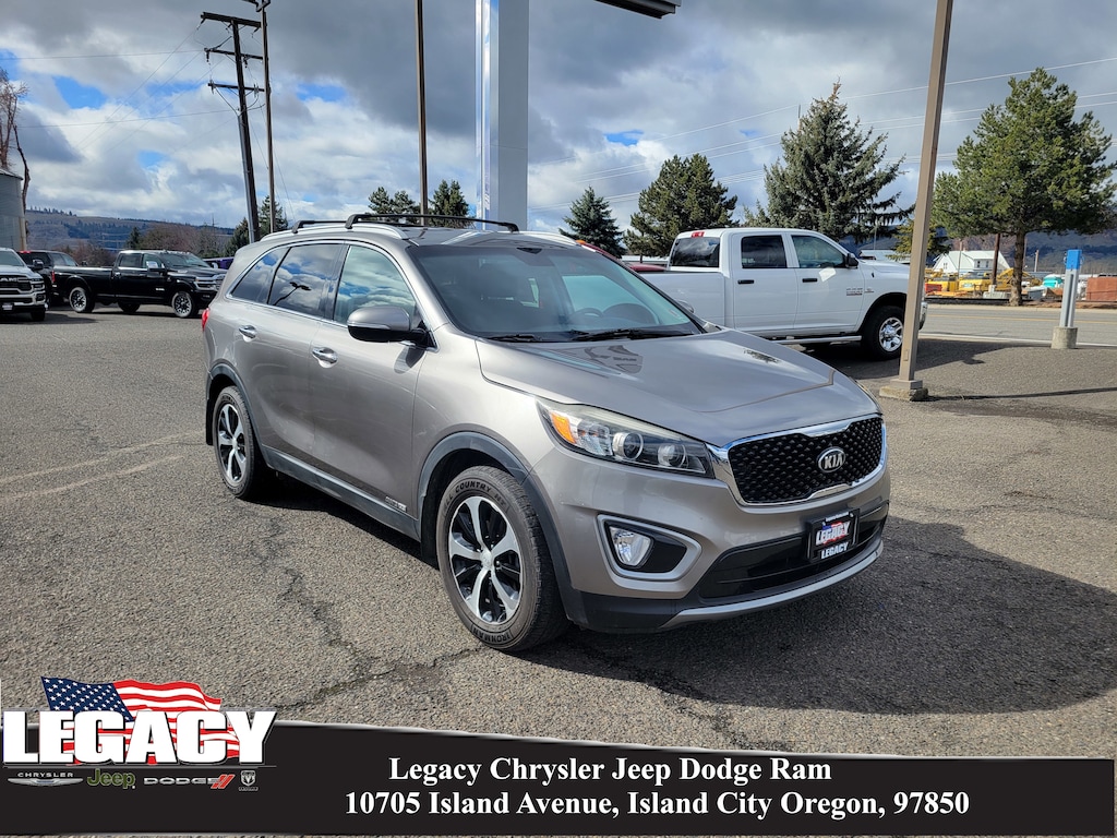 Legacy Chrysler Jeep Dodge RAM is a small town dealership where reputation is everything. We build our business with the help and support of our customers. As the top dealer in Eastern Oregon we are able to offer a wide selection of cars and trucks, excellent pricing and a hassle free buying experience. All of our vehicles are safety inspected, Legacy certified and come with an AutoCheck vehicle history report. AWD, 3.32 Axle Ratio, 3rd row seats: split-bench, 4-Wheel Disc Brakes, 6 Speakers, ABS brakes, Air Conditioning, Alloy wheels, AM/FM radio: SiriusXM, Anti-whiplash front head restraints, Apple CarPlay & Android Auto, Auto-dimming Rear-View mirror, Automatic temperature control, Brake assist, Bumpers: body-color, CD player, Cross Bars, Delay-off headlights, Driver door bin, Driver vanity mirror, Dual front impact airbags, Dual front side impact airbags, Electronic Stability Control, Emergency communication system: UVO3, Exterior Parking Camera Rear, Four wheel independent suspension, Front anti-roll bar, Front Bucket Seats, Front Center Armrest, Front dual zone A/C, Front fog lights, Front reading lights, Fully automatic headlights, Heated door mirrors, Heated Front Bucket Seats, Heated front seats, Illuminated entry, Leather Seat Trim, Low tire pressure warning, Mudguards: front & rear, Occupant sensing airbag, Outside temperature display, Overhead airbag, Overhead console, Panic alarm, Passenger door bin, Passenger vanity mirror, Power door mirrors, Power driver seat, Power passenger seat, Power steering, Power windows, Radio: AM/FM/SiriusXM, Rear air conditioning, Rear anti-roll bar, Rear Parking Sensors, Rear seat center armrest, Rear window defroster, Rear window wiper, Remote keyless entry, Roof rack: rails only, Security system, Speed control, Speed-sensing steering, Split folding rear seat, Spoiler, Steering wheel mounted audio controls, Tachometer, Telescoping steering wheel, Tilt steering wheel, Traction control, Trip computer, Turn signal indicator mirrors, Variably intermittent wipers, and Wheels: 18 x 7.5 Alloy.