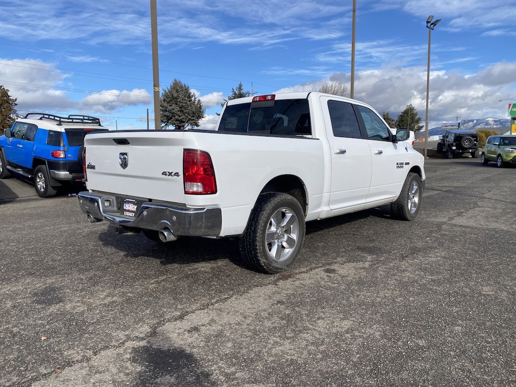 Legacy Chrysler Jeep Dodge RAM is a small town dealership where reputation is everything. We build our business with the help and support of our customers. As the top dealer in Eastern Oregon we are able to offer a wide selection of cars and trucks, excellent pricing and a hassle free buying experience. All of our vehicles are safety inspected, Legacy certified and come with an AutoCheck vehicle history report. Big Horn Regional Package, Heated Seats & Wheel Group (DISC) (Heated Front Seats and Heated Steering Wheel), Quick Order Package 28S Big Horn (115V Auxiliary Power Outlet, 40/20/40 Split Bench Seat, 6 Month Trial (Reg. Required), 6 Month Trial (Registration Required), 8.4 Touchscreen Display, Air Conditioning ATC w/Dual Zone Control, Audio Jack Input for Mobile Devices, Auto-Dimming Exterior Mirrors, Auto-Dimming Rear-View Mirror, Big Horn Badge, Bright/Bright Billets Grille, Charge Only Remote USB Port, Class IV Receiver Hitch, Dual Rear Exhaust w/Bright Tips, Electric Shift-On-Demand Transfer Case, Electroluminescent Instrument Cluster, Exterior Mirrors Courtesy Lamps, Exterior Mirrors w/Supplemental Signals, Fog Lamps, Folding Flat Load Floor Storage, For Details Visit DriveUconnect.com, Front Armrest w/3 Cupholders, Front Center Seat Cushion Storage, Glove Box Lamp, GPS Antenna Input, Integrated Voice Command w/Bluetooth, Leather Wrapped Steering Wheel, LED Bed Lighting, Media Hub (USB, AUX), Nav-Capable! See Dealer for Details, Overhead Console w/Garage Door Opener, ParkSense Front/Rear Park Assist System, ParkView Rear Back-Up Camera, Power 10-Way Driver Seat, Power Heated Fold-Away Mirrors, Power Lumbar Adjust, Power-Folding Mirrors, Premium Cloth 40/20/40 Bench Seat, Radio: Uconnect 3C w/8.4 Display, Rear 60/40 Split Folding Seat, Rear Dome w/On/Off Switch Lamp, Remote Start System, Remote USB Port, Security Alarm, SIRIUSXM Satellite Radio, Steering Wheel Mounted Audio Controls, Storage Tray, Sun Visors w/Illuminated Vanity Mirrors, Uconnect Access, Underhood Lamp, Universal Garage Door Opener, and Wheels: 20 x 8 Aluminum Chrome Clad), 17 x 7 Aluminum Wheels, 4-Wheel Disc Brakes, 6 Speakers, 9 Alpine Speakers w/Subwoofer, ABS brakes, Active Grille Shutters, Air Conditioning, Alloy wheels, AM/FM radio, Anti-Spin Differential Rear Axle, Black Exterior Mirrors, Black Rotary Shifter, Brake assist, Bumpers: chrome, Center Hub, Cloth 40/20/40 Bench Seat, Compass, Delay-off headlights, Driver door bin, Dual front impact airbags, Dual front side impact airbags, Electronic Shift, Electronic Stability Control, Exterior Mirrors w/Heating Element, Front anti-roll bar, Front Center Armrest w/Storage, Front reading lights, Front wheel independent suspension, Fully automatic headlights, Heated door mirrors, Illuminated entry, Low tire pressure warning, Occupant sensing airbag, Outside temperature display, Overhead airbag, Overhead console, Panic alarm, Passenger door bin, Passenger vanity mirror, Power door mirrors, Power steering, Power windows, Radio data system, Radio: Uconnect 3 w/5 Display, Rear anti-roll bar, Rear seat center armrest, Rear step bumper, Remote keyless entry, Speed control, Tachometer, Tilt steering wheel, Tip Start, Traction control, Trailer Brake Control, Trip computer, Variably intermittent wipers, and VoltmeteR.
