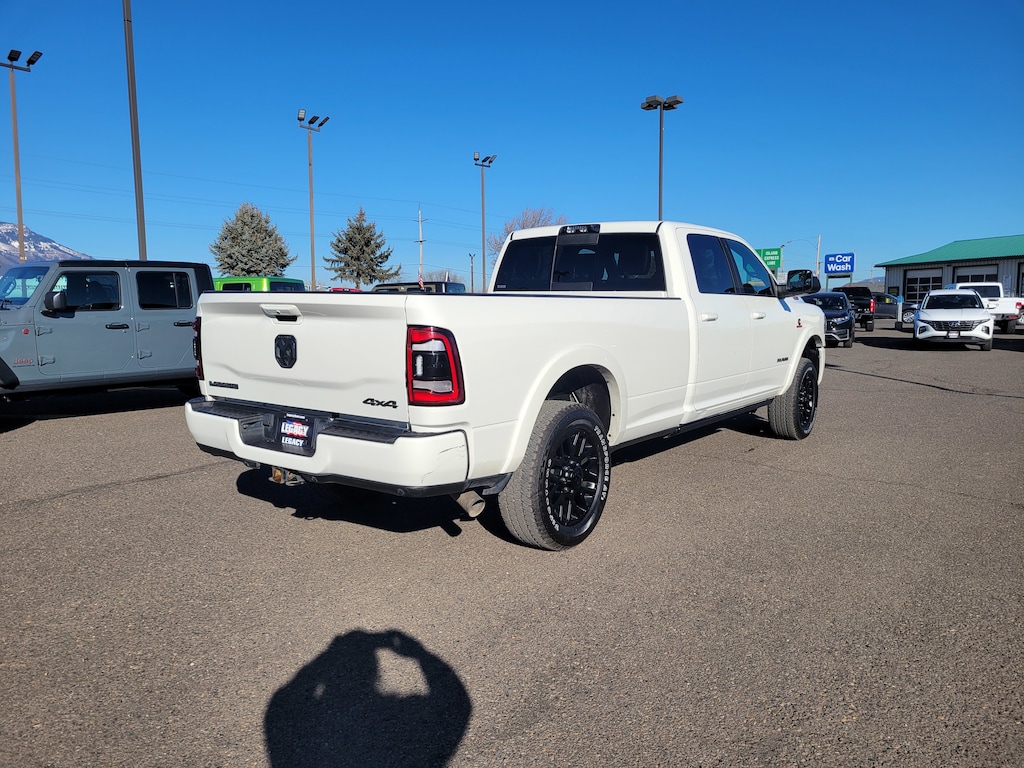 Legacy Chrysler Jeep Dodge RAM is a small town dealership where reputation is everything. We build our business with the help and support of our customers. As the top dealer in Eastern Oregon we are able to offer a wide selection of cars and trucks, excellent pricing and a hassle free buying experience. All of our vehicles are safety inspected, Legacy certified and come with an AutoCheck vehicle history report. Bed Utility Group (LED Bed Lighting, MOPAR Deployable Bed Step, and MOPAR Spray In Bedliner), Laramie Level B Equipment Group (DISC) (17 Speaker harman kardon Premium Sound, 2nd Row In Floor Storage Bins, 4G LTE Wi-Fi Hot Spot, 8.4 Touchscreen Display, Alexa Built-In, All R1 High Radios, All Radio Equipped Vehicles, Apple CarPlay, Auto High Beam Headlamp Control, Chrome Exterior Mirrors, Connected Travel & Traffic Services, Connectivity - US/Canada, Disassociated Touchscreen Display, Exterior Mirrors Courtesy Lamps, Exterior Mirrors w/Heating Element, Exterior Mirrors w/Memory, Exterior Mirrors w/Supplemental Signals, Foam Bottle Insert (Door Trim Panel), For Details, Visit DriveUconnect.com, For More Info, Call 800-643-2112, Global Telematics Box Module (TBM), Google Android Auto, GPS Antenna Input, GPS Navigation, HD Radio, Heated Second Row Seats, Integrated Center Stack Radio, Integrated Voice Command w/Bluetooth, Mirror Running Lights, Mirror-Mounted Aux Reverse Lamps, Off-Road Information Pages, Power Adjustable Convex Aux Mirrors, Power Adjustable Pedals w/Memory, Power Chrome Tow Mirrors w/Convex Spotter & Memory, Power Folding Mirrors, Radio: Uconnect 5 Nav w/8.4 Display, Radio/Driver Seat/Mirrors/Pedals Memory, Rain Sensitive Windshield Wipers, Remote Tailgate Release, Selectable Tire Fill Alert, SiriusXM Radio Service, SiriusXM w/360L, and Trailer Tow Mirrors), Night Edition (Black Exterior Mirrors, Black Exterior Truck Badging, Black Headlamp Bezels, Black Interior Accents, Black Ram Head Tailgate Badge, Black Tail Lamp Bezels, Black Wheel Center Hub, Body Color Door Handles, Body Color Grille Surround, Gloss Black Grille Billets/Accents, Painted Front Bumper, Painted Rear Bumper, Power Black Tow Mirrors w/Convex Spotter & Memory, and Wheels: 20 x 8.0 Black Painted Aluminum), Quick Order Package 2HH Laramie, Safety Group B (DISC) (Adaptive Cruise Control w/Stop, Adaptive Steering System, Digital Rearview Mirror, Full Speed Forward Collision Warning Plus, and Lane Keep Assist), 10 Speakers, 115V Auxiliary Rear Power Outlet, 12 Touchscreen Display, 2 Way Rear Headrest Seat, 220 Amp Alternator, 3.73 Axle Ratio, 4 Way Front Headrests, 4-Wheel Disc Brakes, ABS brakes, Active Noise Control System, Adjustable pedals, Air Conditioning, Air Suspension Decal, Alloy wheels, AM/FM radio: SiriusXM, Apple CarPlay/Android Auto, Auto Level Rear Air Suspension, Auto-dimming Rear-View mirror, Automatic temperature control, Blind Spot & Cross Path Detection, Bluetooth Handsfree Phone & Audio, Brake assist, Bumpers: chrome, Compass, Delay-off headlights, Driver door bin, Driver vanity mirror, Dual front impact airbags, Dual front side impact airbags, Electronic Stability Control, Electronically Controlled Throttle, Front anti-roll bar, Front Center Armrest w/Storage, Front dual zone A/C, Front fog lights, Front License Plate Bracket, Front reading lights, Front Seat Back Map Pockets, Fully automatic headlights, Garage door transmitter, Heated door mirrors, Heated Front Seats, Heated front seats, Heated Steering Wheel, Heated steering wheel, Illuminated entry, Leather steering wheel, Leather Trim 40/20/40 Bench Seat, Low tire pressure warning, Occupant sensing airbag, Outside temperature display, Overhead airbag, Overhead console, Panic al