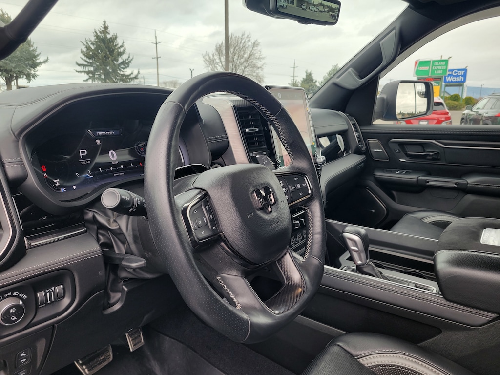 Legacy Chrysler Jeep Dodge RAM is a small town dealership where reputation is everything. We build our business with the help and support of our customers. As the top dealer in Eastern Oregon we are able to offer a wide selection of cars and trucks, excellent pricing and a hassle free buying experience. All of our vehicles are safety inspected, Legacy certified and come with an AutoCheck vehicle history report. Bed Utility Group (Exterior 115V AC Outlet, MOPAR 4 Adjustable Cargo Tie-Down Hooks, MOPAR Deployable Bed Step, and MOPAR Spray In Bedliner), Quick Order Package 22Y RHO, RHO Level 1 Equipment Group (12-Way/1-Way Trailer Connector, 14.4 Touchscreen Display, 240 Amp Alternator, 4G LTE Wi-Fi Hot Spot, Apple CarPlay, Connected Travel & Traffic Services, Connectivity - US/Canada, Driver Power Seat Back Massage, Driver Seat Memory, Driver/Passenger Wrapped Assist Handles, Drowsy Driver Detection, Dual Wireless Charging Pad, Evasive Steer Assist, Exterior Mirrors w/Memory, Front Passenger Interactive Display, Front Passenger Power Seat Back Massage, Full Length Premium Upgraded Floor Console, Google Android Auto, GPS Navigation, Hands-Free Active Driving Assist System, harman/kardon 19 Speaker Premium Sound, HD Radio, Heads-Up Display, Heated Second Row Seats, Integrated Voice Command w/Bluetooth, Intersection Collision Assist System, Leather/Carbon Flat-Bottom Steering Wheel, LED CHMSL Lamp, Luxury Front Door Trim Panel, Power Adjustable Pedals w/Memory, Power Tailgate, Premium Wrapped I/P Bezel, Radio: Uconnect 5 Nav w/14.4 Display, Radio/Driver Seat/Mirrors/Pedals Memory, Rain Sensitive Windshield Wipers, Real Carbon Fiber Interior Accents, Rear 60/40 Folding Split Recline Seat, Smartphone As A Key Capable, Surround View Camera System, Traffic Sign Recognition, USB Host Flip, Ventilated Front Seats, and Ventilated Rear Seats), 10 Speakers, 3.92 Rear Axle Ratio, 4-Wheel Disc Brakes, ABS brakes, Adaptive suspension, Adjustable pedals, Air Conditioning, Alloy wheels, AM/FM radio: SiriusXM with 360L, Apple CarPlay/Android Auto, Auto High-beam Headlights, Auto Power-Folding Mirrors, Auto-dimming door mirrors, Auto-Dimming Exterior Driver Mirror, Auto-dimming Rear-View mirror, Automatic temperature control, Brake assist, Compass, Delay-off headlights, Driver door bin, Driver vanity mirror, Dual front impact airbags, Dual front side impact airbags, Electronic Stability Control, Exterior Mirrors Courtesy Lamps, Exterior Mirrors w/Heating Element, Exterior Mirrors w/Supplemental Signals, Flareside Box, Front anti-roll bar, Front Bucket Seats, Front Center Armrest w/Storage, Front dual zone A/C, Front fog lights, Front License Plate Bracket, Front reading lights, Front wheel independent suspension, Fully automatic headlights, Garage door transmitter, Heated door mirrors, Heated front seats, Heated steering wheel, Illuminated entry, Leather Shift Knob, Leather steering wheel, Leather Trimmed Bucket Seats, Low tire pressure warning, MOPAR RHO Exterior Graphics, MOPAR RHO Hood Graphics, Navigation System, Occupant sensing airbag, Outside temperature display, Overhead airbag, Overhead console, Panic alarm, ParkView Rear Back-Up Camera, Passenger door bin, Passenger vanity mirror, Power door mirrors, Power driver seat, Power passenger seat, Power steering, Power windows, Radio data system, Radio: Uconnect 5 Nav w/12.0 Display, Rear reading lights, Rear seat center armrest, Rear step bumper, Rear window defroster, Remote keyless entry, Security system, Speed control, Split folding rear seat, Sport steering wheel, Steering wheel mounted audio controls, Tachometer, Telescoping s