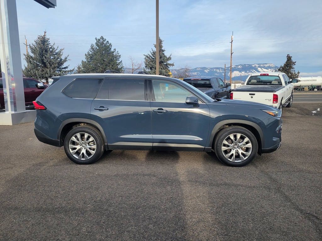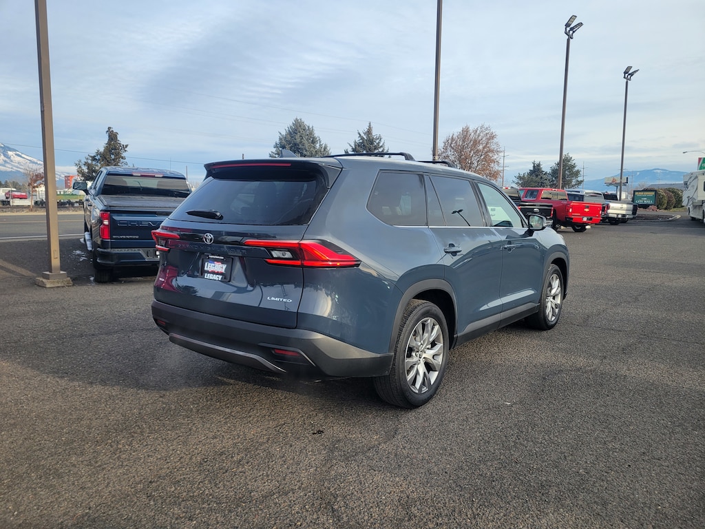 Legacy Chrysler Jeep Dodge RAM is a small town dealership where reputation is everything. We build our business with the help and support of our customers. As the top dealer in Eastern Oregon we are able to offer a wide selection of cars and trucks, excellent pricing and a hassle free buying experience. All of our vehicles are safety inspected, Legacy certified and come with an AutoCheck vehicle history report. 11 Speakers, 20 Aluminum Alloy Wheels, 3.33 Axle Ratio, 3rd row seats: split-bench, 4-Wheel Disc Brakes, ABS brakes, Air Conditioning, Alloy wheels, AM/FM radio: SiriusXM, Apple CarPlay/Android Auto, Auto High-beam Headlights, Auto-dimming Rear-View mirror, Automatic temperature control, Brake assist, Bumpers: body-color, Delay-off headlights, Driver door bin, Driver vanity mirror, Dual front impact airbags, Dual front side impact airbags, Electronic Stability Control, Emergency communication system: Safety Connect (up to 10-year trial subscription), Exterior Parking Camera Rear, Four wheel independent suspension, Front anti-roll bar, Front Bucket Seats, Front Center Armrest, Front dual zone A/C, Front fog lights, Front reading lights, Fully automatic headlights, Garage door transmitter: HomeLink, Heated & Ventilated Front Seats w/Memory, Heated door mirrors, Heated front seats, Heated rear seats, Heated steering wheel, Illuminated entry, Knee airbag, Leather Seat Trim, Leather Shift Knob, Leather steering wheel, Low tire pressure warning, Memory seat, Navigation system: Drive Connect Cloud Navigation (1-year trial subscription), Occupant sensing airbag, Outside temperature display, Overhead airbag, Overhead console, Panic alarm, Passenger door bin, Passenger vanity mirror, Power door mirrors, Power driver seat, Power Liftgate, Power passenger seat, Power steering, Power windows, Radio: 12.3 Toyota Audio Multimedia w/JBL Premium, Rain sensing wipers, Rear air conditioning, Rear anti-roll bar, Rear reading lights, Rear window defroster, Rear window wiper, Reclining 3rd row seat, Remote keyless entry, Security system, Speed control, Speed-sensing steering, Split folding rear seat, Spoiler, Steering wheel mounted audio controls, Tachometer, Telescoping steering wheel, Tilt steering wheel, Traction control, Trip computer, Turn signal indicator mirrors, Variably intermittent wipers, and Ventilated front seats.